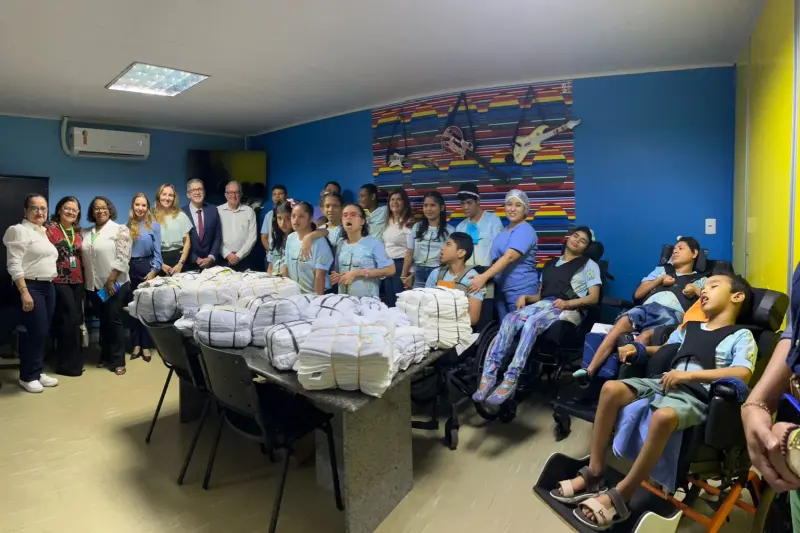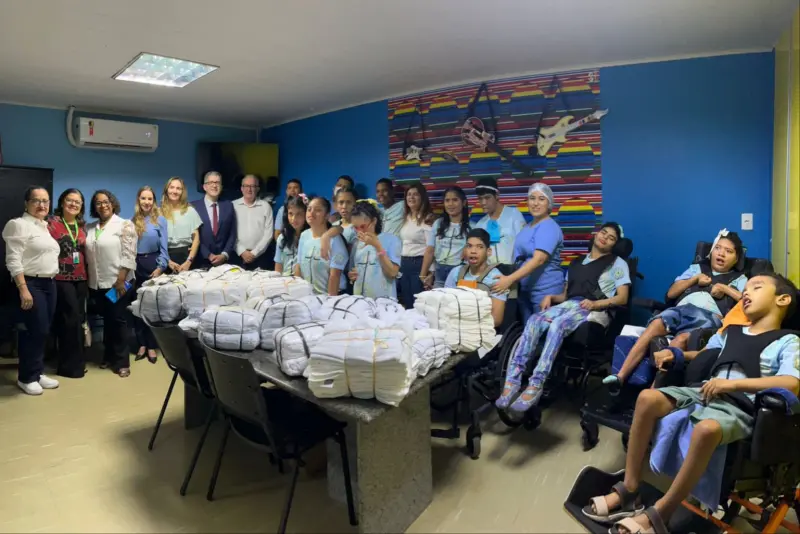 Seguindo esta programação, foram entregues, na manhã desta terça-feira (26), mais de 240 itens, entre lençóis, toalhas e fronhas, ao Abrigo Especial Calabriano, uma instituição sem fins lucrativos que mantém atividades, em parceria com o Governo do Estado, nas áreas educacionais, de assistência social e saúde, acolhendo crianças e adolescentes com deficiências de causas físicas, neurológicas e sensoriais. Atualmente, o local abriga 35 jovens resididos e mais de 300 crianças e adolescentes, entre 0 e 13 anos, que frequentam a casa e são atendidos para reabilitação neuropsicomotora.