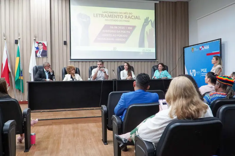 A Procuradoria-Geral do Estado (PGE) lançou, na manhã desta terça-feira (26), agosto como o Mês do Letramento Racial, durante evento realizado na sede da instituição, em Belém. O encontro contou com a presença de autoridades e assinantes envolvidos no Pacto Interinstitucional Pró-Equidade Racial, coordenado pelo Tribunal de Contas do Estado (TCE-PA), além de representantes do poder público e a comunidade em geral.