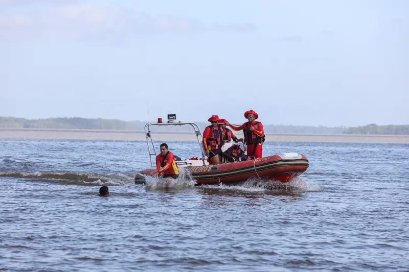 “Para as operações, utilizamos equipamentos de mergulho autônomo, como cilindros, válvulas, reguladores, coletes equilibradores, máscaras e nadadeiras, além de materiais específicos para o resgate subaquático. As embarcações empregadas incluem lanchas de apoio, tipo leme e flex boat, fundamentais quando não há ponto exato de localização de vítimas. Após 24 horas, iniciamos as buscas superficiais, em que essas embarcações ampliam a área de varredura e otimizam o resgate”, explicou o tenente-coronel do CBMPA, Aluiz Palheta Rodrigues.