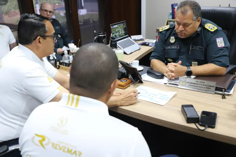 Na manhã desta terça-feira (26), o Comandante-Geral da Polícia Militar do Pará, Coronel Dilson Júnior, recebeu, no Quartel do Comando Geral, em Belém, representantes da Coordenação da Guarda de Nazaré para uma reunião estratégica que teve como objetivo fortalecer a colaboração entre as instituições, visando preservar a integridade da corda dos promesseiros durante a grande procissão do Círio de Nazaré.