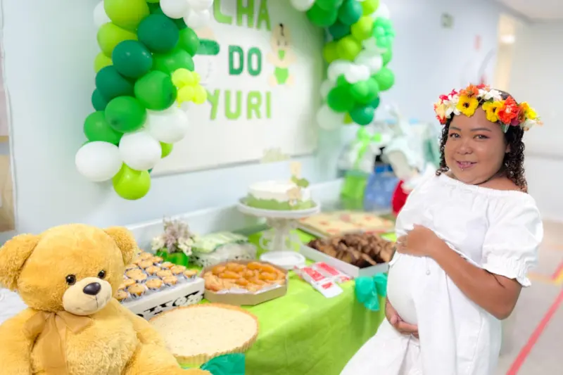 Para a paciente, a notícia da gravidez veio acompanhada de medo e surpresa, mas o apoio da equipe tem sido fundamental. “No começo eu fiquei assustada, porque sabia dos riscos para mim e para o bebê. Hoje, já aceito meu filho e quero muito que ele nasça bem. Sou muito grata a toda a equipe, desde a assistente social até os técnicos de enfermagem, que sempre me trataram com carinho. Esse Baby Chá foi maravilhoso e me deixou muito feliz”, disse, emocionada.