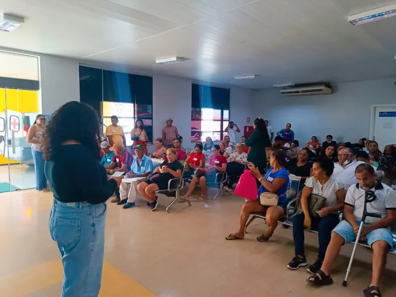 Atividade, realizada na recepção da unidade, envolveu usuários e acompanhantes