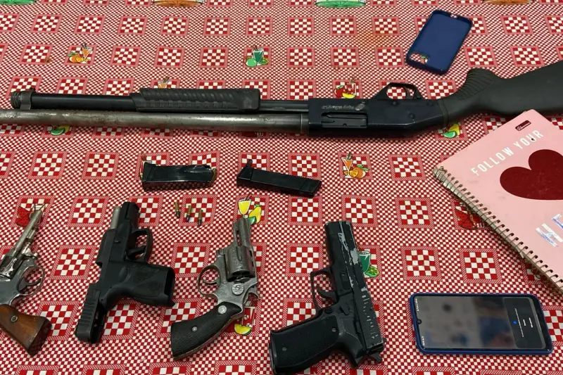 Entre as armas apreendidas, havia revólveres, pistolas e uma espingarda. Na residência em que as buscas foram realizadas, também foram encontrados um veículo, caixas de armas, pendrives, tornozeleira eletrônica, DVR, CPU e celular. Também foram apreendidos R$ 6.493 em espécie.