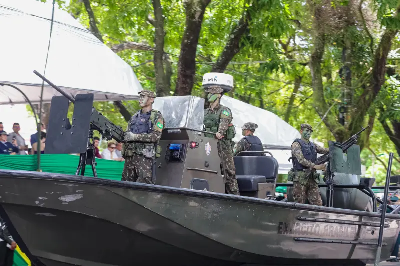Exército Brasileiro: 970 militares, 450 alunos do Colégio Militar de Belém, 14 viaturas, motocicletas de combate, obuseiro, morteiro pesado, blindados Guarani e embarcação de combate Guardian.