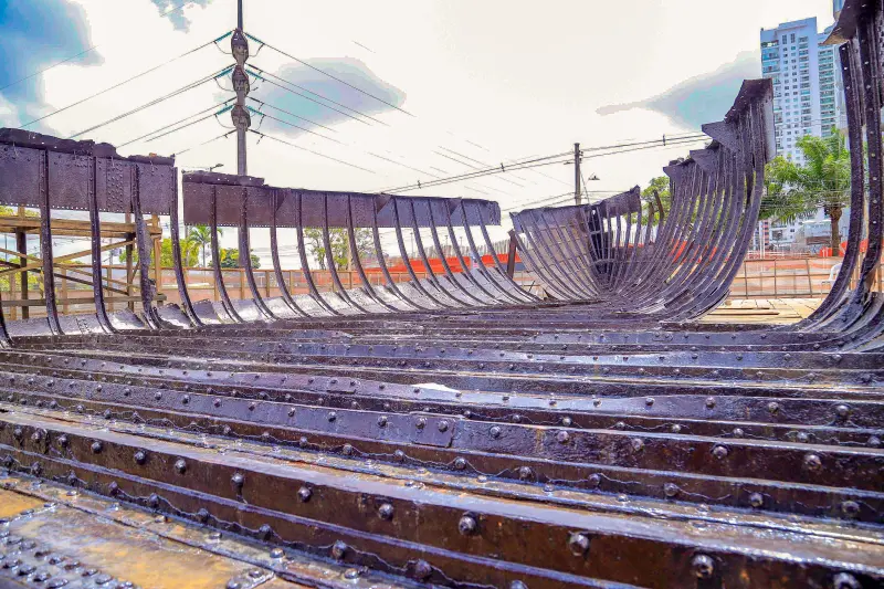 Barco metálico de 22 metros, com características do final do século XIX e início do XX, foi um dos principais achados arqueológicos do projeto do Parque Linear da Nova Doca e passou por processo de restauração