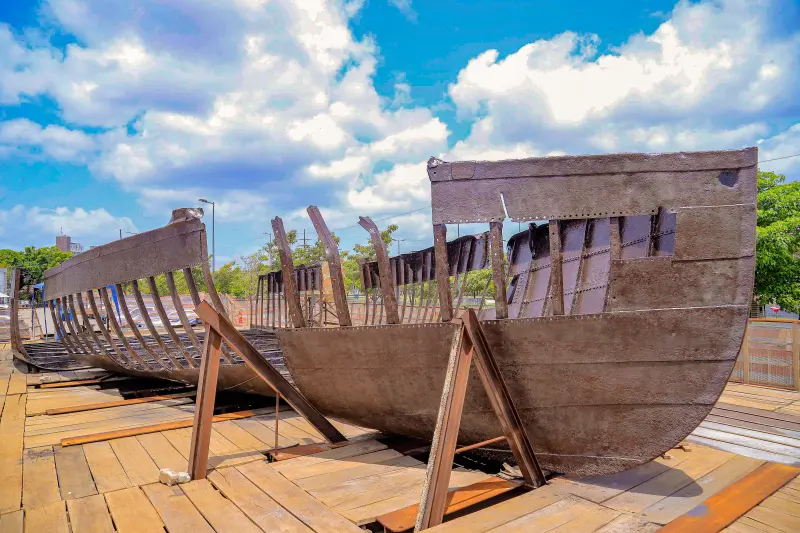 Embarcação histórica encontrada na Nova Doca recebe últimos retoques para ser exibida ao público
