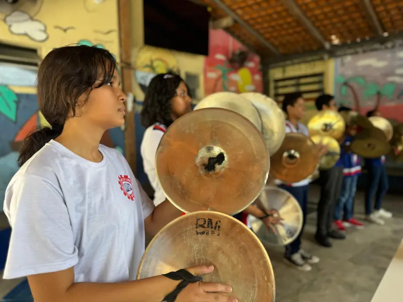 Com instrumentos comprados com recursos do Programa Dinheiro na Escola Paraense (Prodep), o projeto retoma as atividades neste segundo semestre letivo com aulas sobre os fundamentos da música instrumental, seus elementos e relevância cultural, trabalhados dentro da disciplina de Arte.