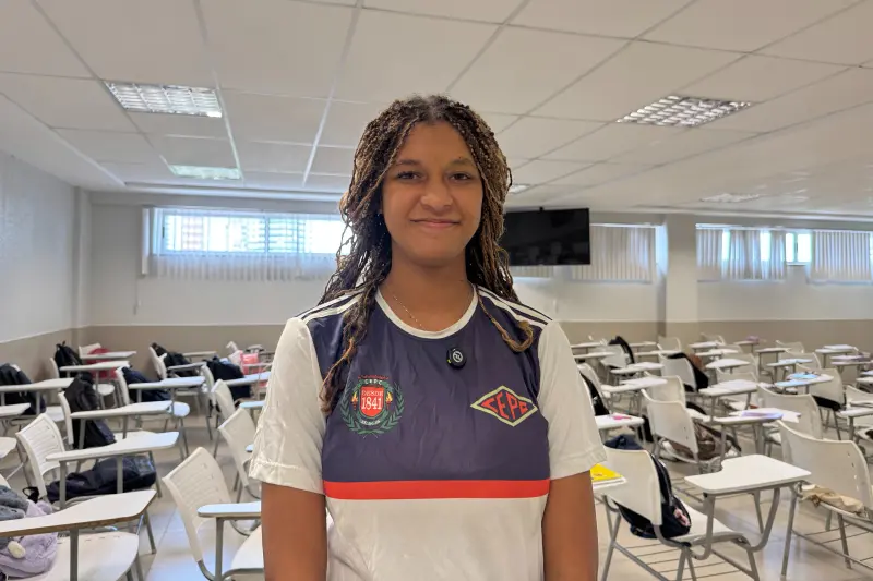 A jovem Helynnety Lopes, de 18 anos, estudante da 3ª série da EEEFM Paes de Carvalho, destacou o impacto da iniciativa para quem não pode pagar cursinhos.
