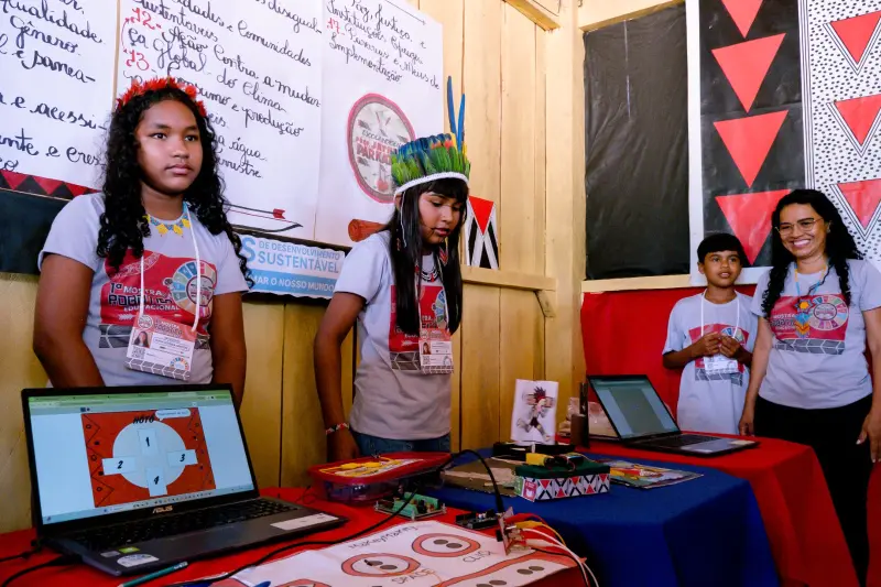 Estudantes exibem as experiências desenvolvidas no projeto que une cultura indígena e novas tecnologias