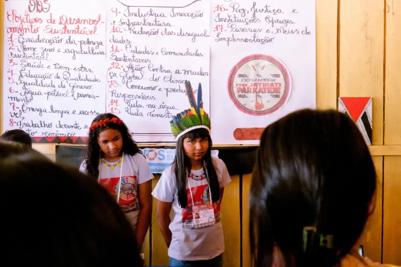 Alunos da Escola Indígena Estadual Jathiati Parkatêjê, localizada na Terra Indígena “Mãe Maria”, no município de Bom Jesus do Tocantins, no sudeste do Pará, vivenciaram novas formas de aprendizagem, como o uso da robótica educacional como ferramenta para unir tecnologia, cultura e os Objetivos de Desenvolvimento Sustentável (ODS), as metas globais promovidas pela Organização das Nações Unidas (ONU).