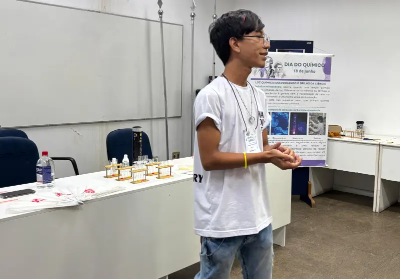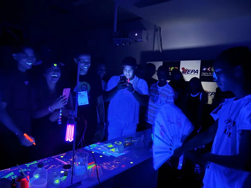 A oficina vai abordar a quimiluminescência, explicando como ocorre a reação nos animais e apresentando exemplos práticos da natureza. Entre eles, o público poderá conhecer um vagalume, que se destaca por apresentar a bioluminescência, fenômeno específico que ocorre em alguns seres vivos. Para ilustrar a atividade, serão utilizados recursos de quimiluminescência e fluorescência, que ajudam a compreender como a luz pode ser produzida por diferentes organismos e substâncias. Durante a atividade, os participantes também poderão interagir diretamente com tintas, lápis e desenhos temáticos, tornando a experiência mais lúdica e envolvente.