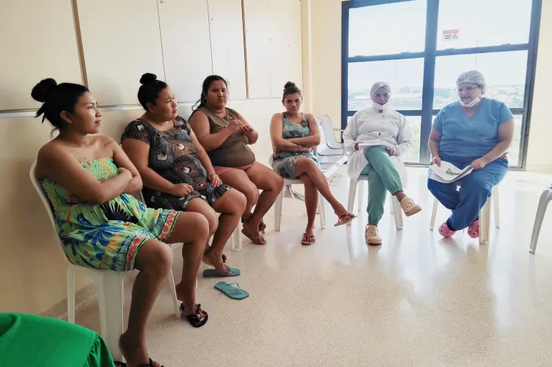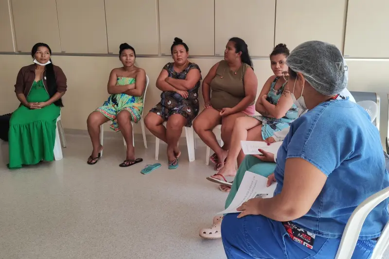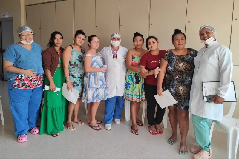 Nesta quarta-feira (17), o Hospital Regional do Tapajós (HRT), em Itaituba, sudoeste do Pará, realizou mais uma edição do projeto "Janelas de Diálogo: espaço de orientação e apoio para acompanhantes das UTIs infantis". Seis mães de pacientes internados nas unidades Pediátrica, Neonatal e Canguru participaram da atividade, que busca oferecer acolhimento, esclarecer dúvidas sobre rotinas hospitalares e proporcionar suporte emocional às famílias.
