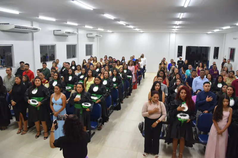 Familiares, amigos e professores se reuniram no auditório da Universidade do Estado do Pará (Uepa), na quinta-feira (18), em Vigia de Nazaré, para celebrar a formatura de 132 alunos da unidade local da Escola Estadual de Ensino Técnico do Pará, vinculada à Secretaria de Estado de Ciência, Tecnologia e Educação Profissional (Sectet).