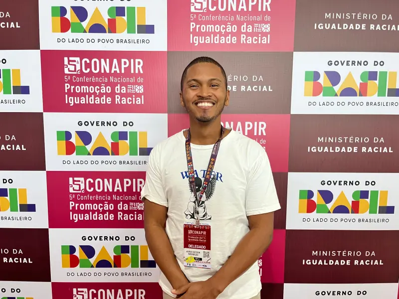 Juventude negra - João Victor Mereiles participou pela primeira vez de uma Conferência Nacional de Promoção da Igualdade Racial. Segundo ele, o evento foi um espaço de fortalecimento coletivo. “Me sinto muito honrado de poder fazer parte desse momento que é, acima de tudo, de escuta e troca com os nossos mais velhos. Mas para além desse momento de escuta, percebo que o povo preto quando se une, é para aquilombar. E participar da conferência nacional como conselheiro estadual, mas também eleito em plenária da juventude negra, representando a juventude negra do Pará, e poder ajudar a construir políticas, proposições de igualdade, respeito e inclusão da juventude negra em processos de política, em processos de tomada de decisão, é muito importante”, afirmou.