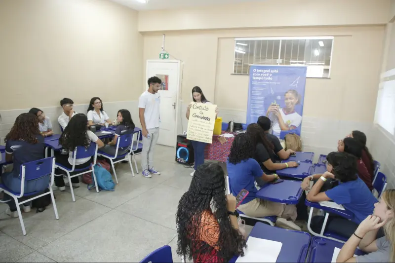 O protagonismo estudantil foi um dos pontos mais destacados. Para Vitor Lucas Lima, estudante do 8º ano da Escola Rui Barbosa, de Ananindeua, o modelo de Ensino Integral transforma a relação entre alunos e professores.