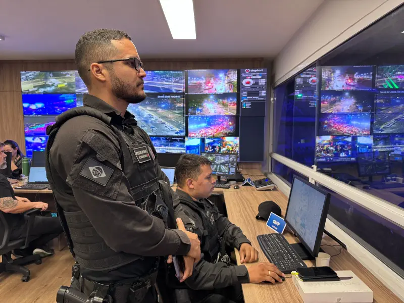 Localizado no camarotes do estádio, no lado B, o Centro de Controle e Comando Operacional (CCO) do Mangueirão reúne os pontos focais de cada força. Do CCO, é possível monitorar as imagens das câmeras instaladas no estádio e no entorno, e assim agilizar as respostas às demandas operacionais, se necessário.