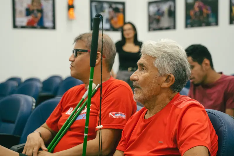 A sessão, voltada para pessoas cegas e com baixa visão que são atendidas pelo centro de reabilitação, exibiu o filme “Ainda Estou Aqui”, dirigido por Walter Salles. A produção brasileira, vencedora do Oscar de Melhor Filme Internacional, promoveu uma reflexão profunda sobre a ditadura militar e destacou a importância da resistência e da preservação da democracia.