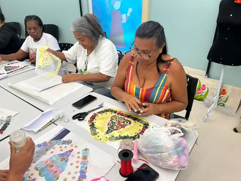 Na Usina da Paz Terra Firme, já está em funcionamento uma turma dedicada à customização de adereços para o Círio. Durante as aulas, os participantes aprendem a transformar peças simples em itens exclusivos que carregam significado cultural e religioso.