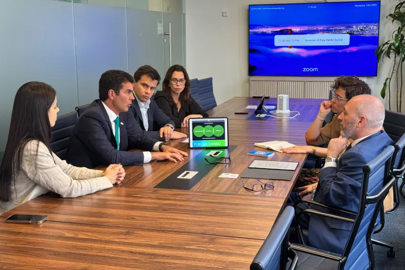 A reunião contou com a participação da líder global para Mercado de Carbono no PNUD, Letícia Guimarães, do secretário de Meio Ambiente, Clima e Sustentabilidade do Pará, Raul Protázio Romão, da secretária adjunta Camille Bemerguy, de Bioeconomia, e Renata Nobre, de Águas e Clima.