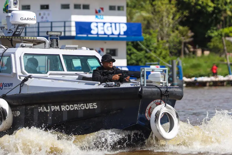 O plano integrado de segurança, que reúne os governos Estadual, Federal e Municipal, em alinhamento com a Convenção-Quadro das Nações Unidas sobre a Mudança do Clima (UNFCCC), prevê a mobilização de cinco mil policiais militares, mil policiais civis e mais de 900 bombeiros militares. A Segup também empregará uma balsa equipada e disponibilizará agentes de segurança pública para atuar diretamente na fiscalização fluvial em parceria com a Marinha.