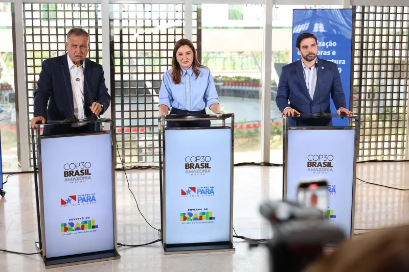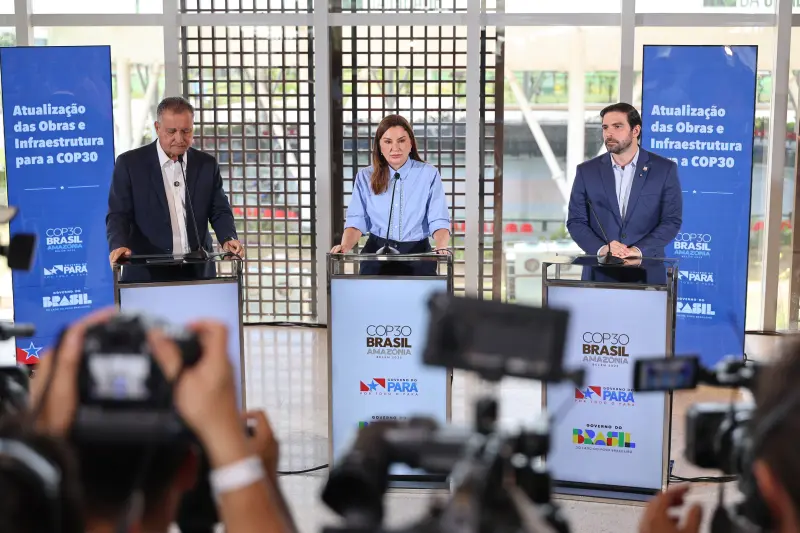 Faltando 47 dias para a Conferência das Nações Unidas sobre Mudança do Clima (COP30), a vice-governadora do Pará, Hana Ghassan, o ministro da Casa Civil, Rui Costa, e o prefeito de Belém, Igor Normando, apresentaram, nesta quarta-feira (24), o balanço de países já confirmados pela ONU e detalharam as obras e investimentos que estão transformando a capital paraense para sediar o maior evento climático do mundo. A entrevista coletiva foi realizada no Centro de Economia Criativa do Parque da Cidade.