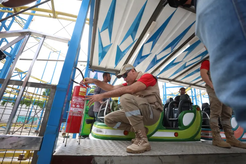 “Verificamos a estrutura, a manutenção, a parte elétrica, buscando garantir que tudo esteja em conformidade com as normas técnicas. Consideramos também a altura e a idade das crianças, para que possam utilizar os brinquedos com total segurança. Essa é uma ação coordenada que acontece durante todo o funcionamento do Parque”, salientou.
