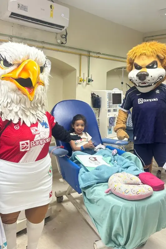 Mascotes de Remo, Paysandu e Tuna levam esperança e alegria a crianças em tratamento na Santa Casa