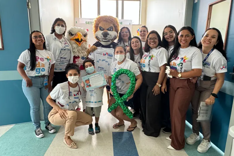 A Central Estadual de Transplantes (CET), da Secretaria de Estado de Saúde Pública do Pará (Sespa), promoveu, nesta sexta-feira (26), uma ação especial em alusão ao Setembro Verde, campanha nacional de conscientização sobre a importância da doação de órgãos e tecidos. Os mascotes dos três principais clubes de futebol do Pará: Remo, Paysandu e Tuna, visitaram pacientes em tratamento na Santa Casa de Misericórdia, levando alegria, esperança e uma mensagem de solidariedade.