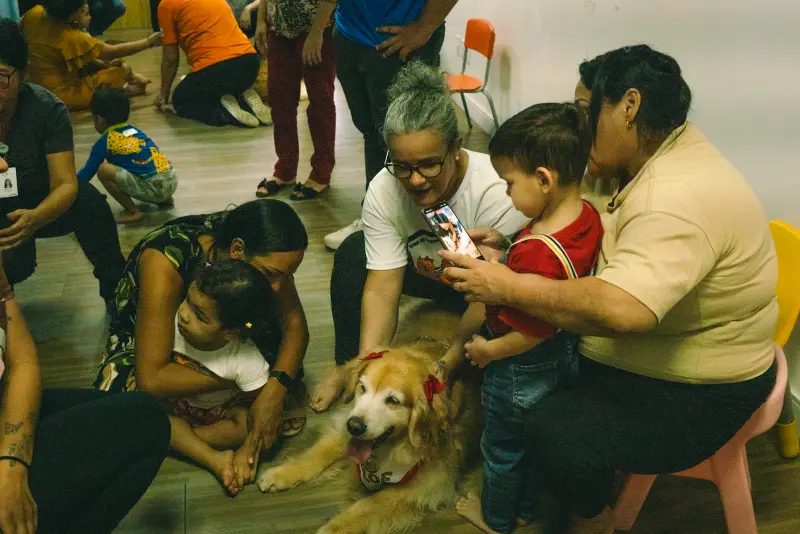 Clube Goldens pela Vida - O projeto Clube Goldens pela Vida foi criado em 2022 e vem ampliando sua atuação em espaços de saúde, educação e assistência social, em parceria com diversas instituições. De acordo com Roseane Barbosa, membro do projeto, os cães se tornaram importantes aliados no apoio terapêutico.