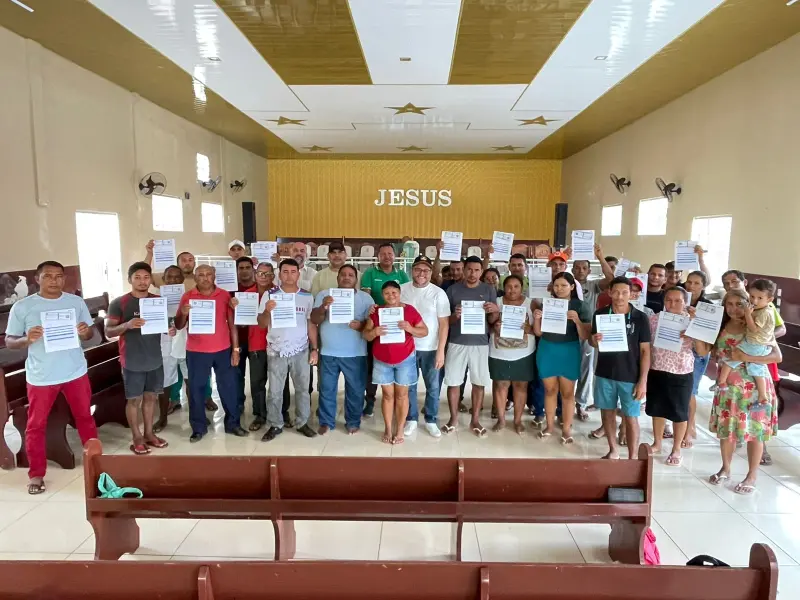 Programas sociais - Após a entrega, realizada no templo da Assembleia de Deus da Comunidade Caracará, os beneficiados ouviram orientações dos chefes locais do Escritório de Cachoeira do Arari e Salvaterra, sobre a criação de projetos aos quais que podem ter acesso, como o Programa Nacional de Fortalecimento da Agricultura Familiar (Pronaf) categoria B, de microcrédito para agricultores.