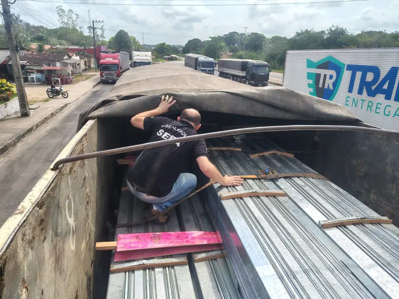 Fiscal da Sefa vistoria carga de ferragens em Cachoeira do Piriá, no nordeste estadual, no domingo (28)