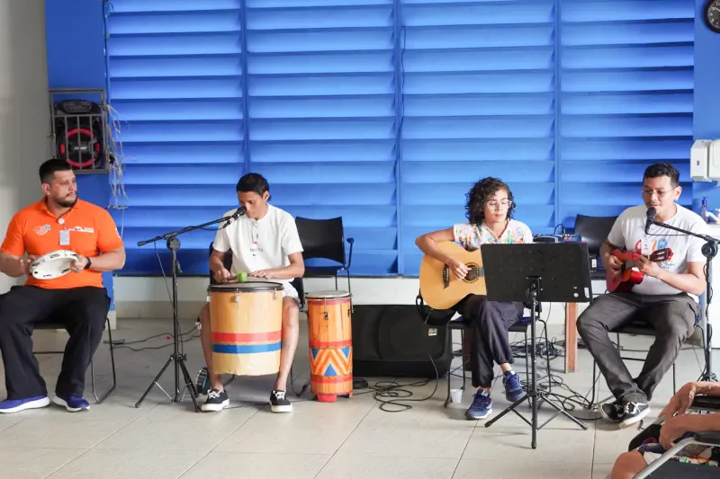 A atividade foi conduzida pelo professor de Música do CIIR, Marcos Mendonça, que levou um repertório de samba repleto de afetividade e nostalgia. A apresentação também contou com a colaboração de outros profissionais da instituição.