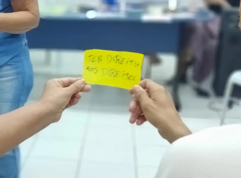 A atividade foi conduzida pela psicóloga da Diretoria de Atendimento Socioeducativo (DAS), Rosicléa Corecha, com uso da metodologia de Mapa Mental — ferramenta que possibilita a organização e expansão de ideias a partir de palavras-chave. Os participantes refletiram sobre conceitos como dignidade, respeito, acolhimento, diversidade, saúde, educação, trabalho e protagonismo juvenil.