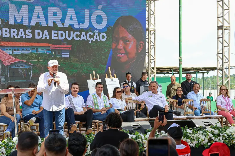 O presidente Lula anunciou ainda a inauguração de duas unidades de ensino fundamental: a escola São Sebastião Rio Limão do Japichaua, na zona rural de Breves, e a escola Francisco Chagas da Costa, em Melgaço.