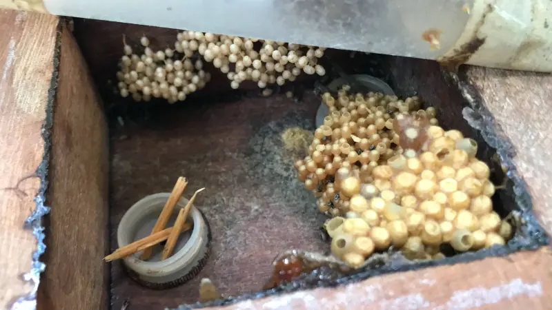 O método de construção das abelhas sem ferrão é um exemplo de sustentabilidade: elas reciclam e reaproveitam a cera sempre que possível, raspando restos de cera de outras colônias para misturar com a sua.