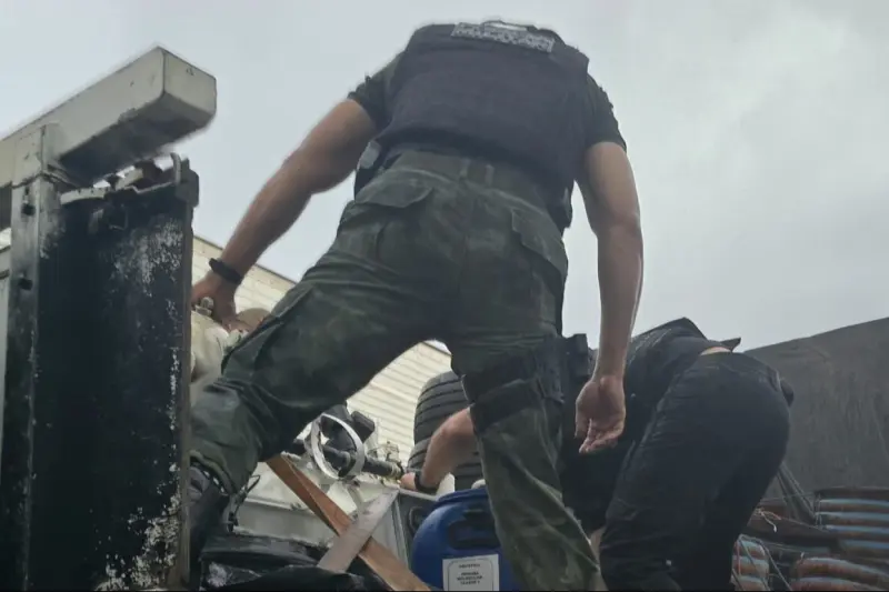 A ação conjunta entre os agentes do Grupamento Fluvial de Segurança Pública (Gflu), juntamente com uma equipe da Polícia Militar, realizaram abordagem em uma balsa, na malha fluvial de Breves, denominada de “Geovana”, de origem da cidade de Manaus, com destino à Belém. Os agentes identificaram, entre as cargas de uma carreta, com a ajuda do cão farejador “Black”, uma grande quantidade de pirarucu seco, que no total pesava 4 toneladas, transportado de forma ilícita, sem a apresentação de documentação legal. O dono da carreta foi levado até a unidade de Polícia Civil da Base, para os procedimentos cabíveis. O pescado foi levado para a vigilância sanitária municipal e posteriormente será doado à uma comunidade.