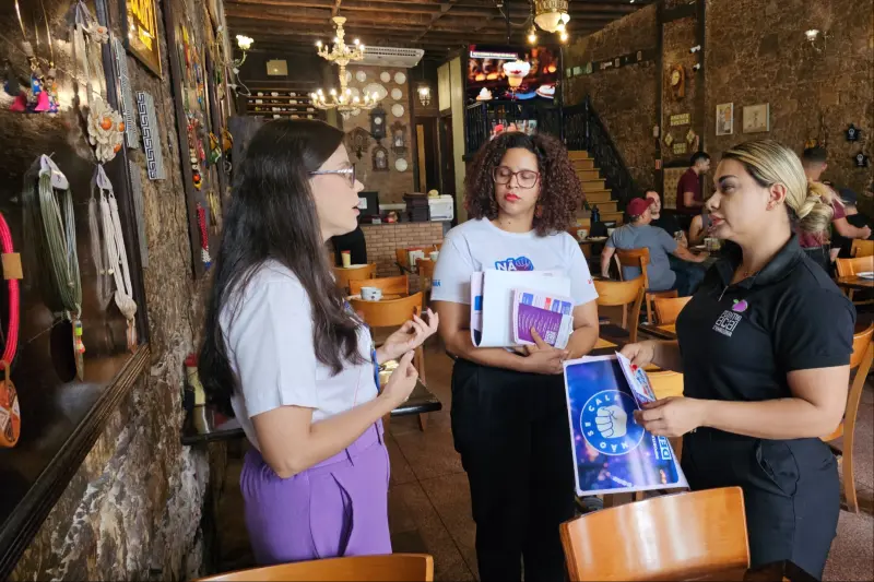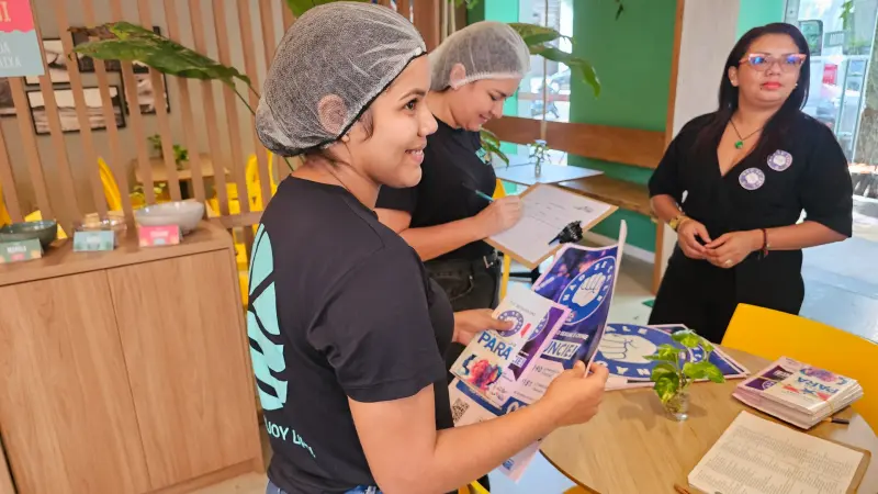A primeira frente da campanha foi realizada em bares e restaurantes da capital, em parceria com a Abrasel (Associação Brasileira de Bares e Restaurantes Pará). Equipes da Semu estiveram em estabelecimentos comerciais para divulgar materiais informativos, orientar gestores e trabalhadores e reforçar a importância da adoção do protocolo como instrumento de proteção.