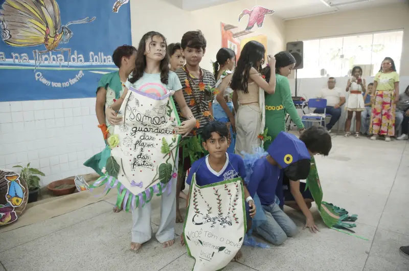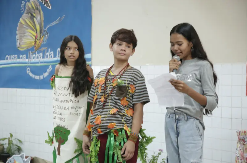 Com foco na formação cidadã e no estímulo ao protagonismo juvenil, o evento contou com a apresentação teatral da lenda amazônica da Matinta Pereira, desfile temático com figurinos confeccionados a partir de materiais recicláveis, criação de biojoias e exposições artísticas que aliaram criatividade e consciência ambiental.