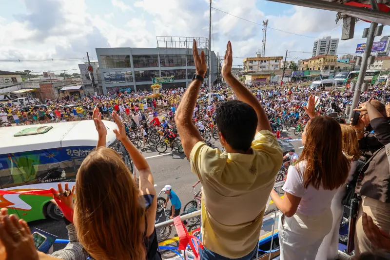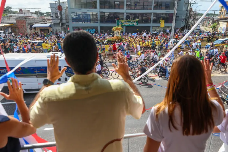 De mãos erguidas para a Virgem de Nazaré, o governador fez suas orações particulares. Ele estava ao lado da primeira-dama Daniela Barbalho. "É uma satisfação agradecer a Nossa Senhora de Nazaré pelas graças alcançadas. Pelas ruas de Belém, de Ananindeua e Marituba, por onde Ela passar, que derrame bênçãos!", disse o governador. "Viva intensamente este momento com Maria. Que Ela, a Rainha da Amazônia, possa proteger todas as nossas famílias", completou Helder Barbalho.