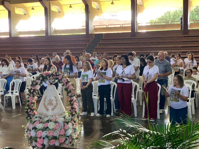 Ainda na sexta-feira, os servidores da instituição também participaram de um momento de louvor durante a passagem da imagem em frente à universidade.