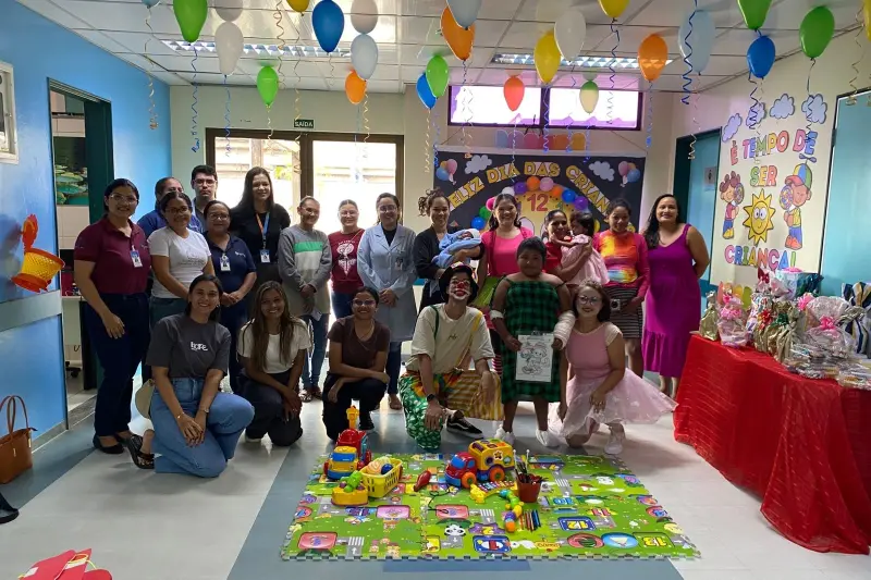 Antecipando o Dia das Crianças, que transcorre no domingo (12), a gestão do Hospital Regional Público do Marajó (HRPM), em Breves, promoveu, nesta quinta-feira (9), uma comemoração especial dedicada às crianças internadas na unidade. A ação, realizada no hall das clínicas, teve como objetivo proporcionar momentos de alegria e descontração às crianças durante o período de internação.