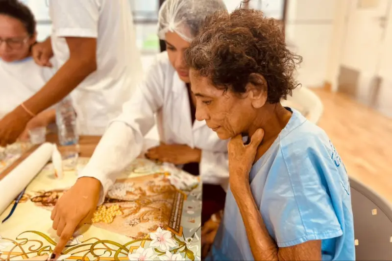 A terapeuta ocupacional Isabel Rodrigues destacou que a proposta foi estimular o bem-estar físico e emocional das pacientes, resgatando laços afetivos e memórias por meio de atividades junto de seus acompanhantes.
