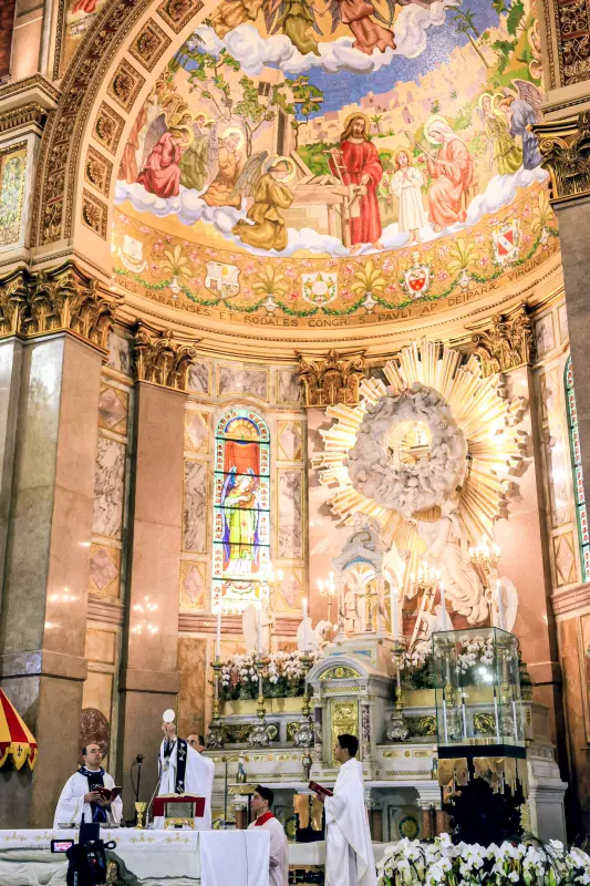 A pequena imagem de 28 centímetros, conduzida pelo arcebispo metropolitano de Belém, Dom Júlio Akamine, desceu lentamente do alto do altar sob aplausos, cânticos e lágrimas. O gesto representa a aproximação da padroeira dos paraenses com o povo, tradição que antecede as principais romarias e homenagens do Círio. A imagem permanecerá exposta em uma redoma de vidro pelos próximos 15 dias, período em que Belém se transforma em um grande santuário de fé.