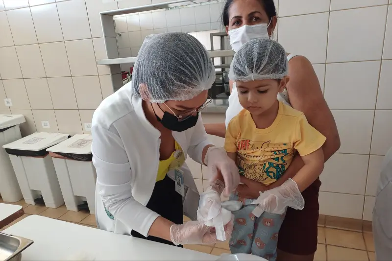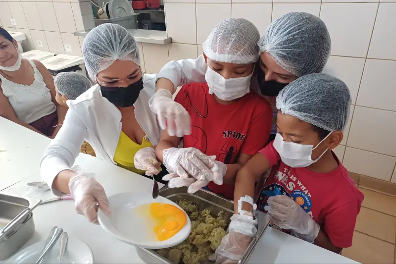 A equipe de nutrição do Hospital Regional do Baixo Amazonas Dr. Waldemar Penna (HRBA), em Santarém, oeste do Pará, ganhou, na sexta-feira (10), um super reforço no preparo dos alimentos. Crianças internadas na clínica pediátrica da unidade desceram até o refeitório para preparar eles mesmos um lanche saudável.