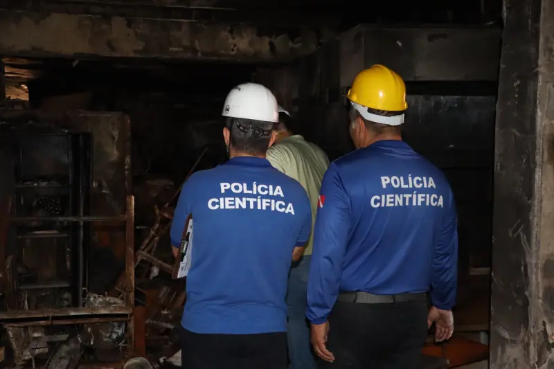 “Periciamos o local buscando identificar a zona de origem do fogo, avaliar o risco de desabamento, e determinar se o incêndio foi doloso, acidental ou resultado de falha de manutenção em equipamentos. A partir dessas análises, emitiremos um parecer técnico para subsidiar a investigação policial”, explicou o perito criminal e engenheiro civil, André Brasil.