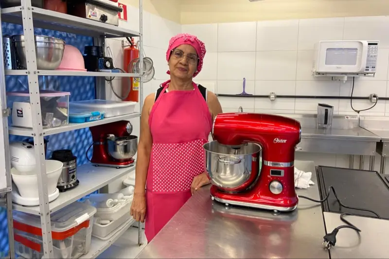A aposentada Nazaré Almeida encontrou nos cursos de gastronomia uma oportunidade de se manter ativa, preservar sua saúde mental e aprender mais sobre os sabores amazônicos. “Desde que me aposentei, eu sentia a necessidade de fazer alguma coisa para garantir uma renda extra e me manter ativa, pois às vezes a gente fica ociosa em casa, podendo até desenvolver depressão. A Usina me garantiu uma nova oportunidade de aprender e aconselho que as pessoas venham participar, porque os benefícios oferecidos são muito bons”, declarou.