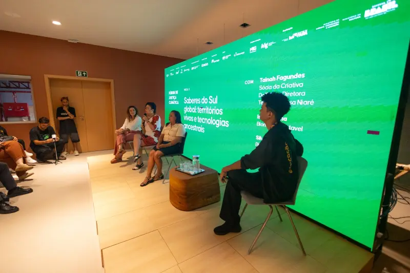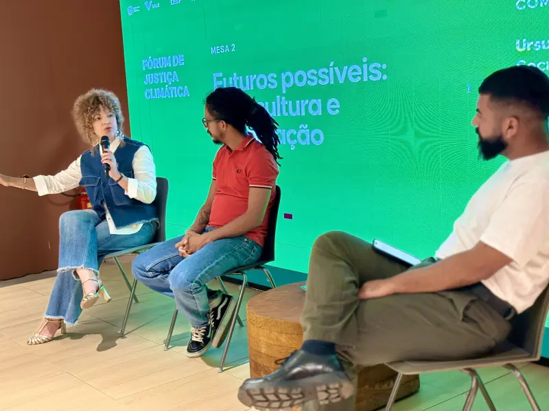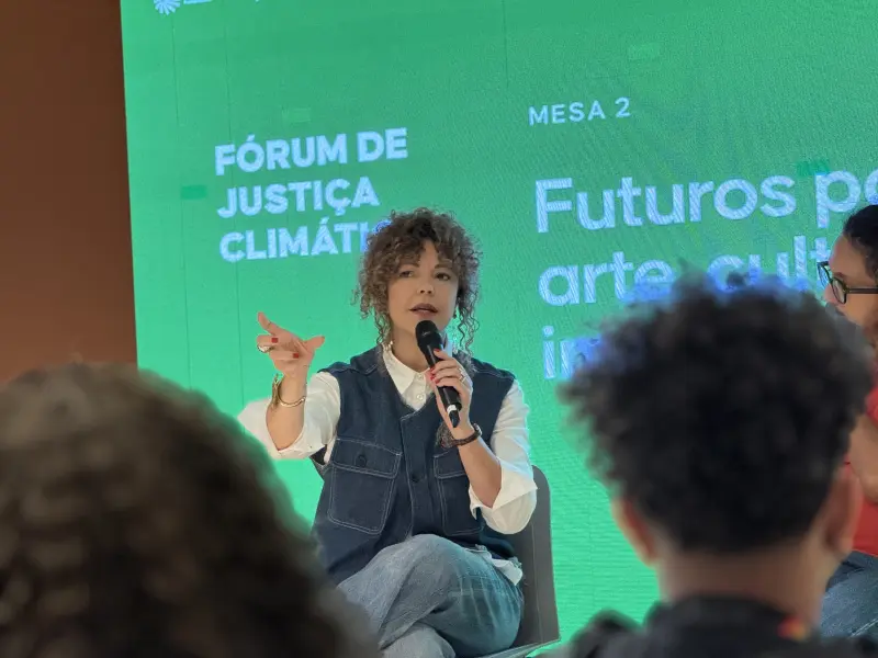 A secretária de Estado de Cultura, Ursula Vidal, participou da mesa sobre arte, cultura e imaginação, destacando o papel da cultura como instrumento de mobilização e transformação social. “São espaços riquíssimos que qualificam nossa fala, nosso protagonismo e nossa luta pela justiça climática e ambiental”, afirmou.