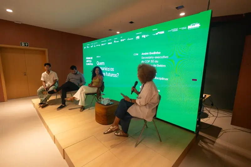 Com o tema “Periferias, florestas e futuros do Sul Global”, o Fórum promoveu dois dias de programação, reunindo lideranças comunitárias, artistas, comunicadores e pesquisadores de diferentes regiões do Brasil. Os debates abordaram arte, cultura, territórios, tecnologias ancestrais e comunicação, com ênfase na construção de políticas e narrativas em torno da Justiça Climática.