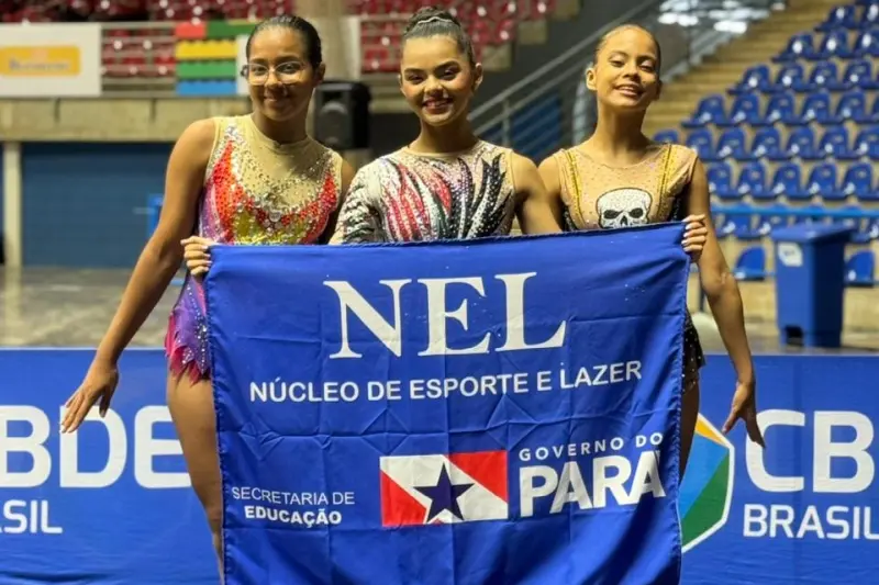 O Pará conquistou o ouro por equipe na ginástica rítmica, nos Jogos Escolares Brasileiros (JEBs) 2025, evento realizado em Uberlândia (MG). A delegação paraense contou com o apoio da Secretaria de Estado de Educação (Seduc), por meio do Núcleo de Esporte e Lazer (NEL), e se destacou nas provas individuais e coletivas. A estudante Júlia Nascimento, da Escola Estadual José Márcio Ayres, foi a única representante da rede pública estadual.