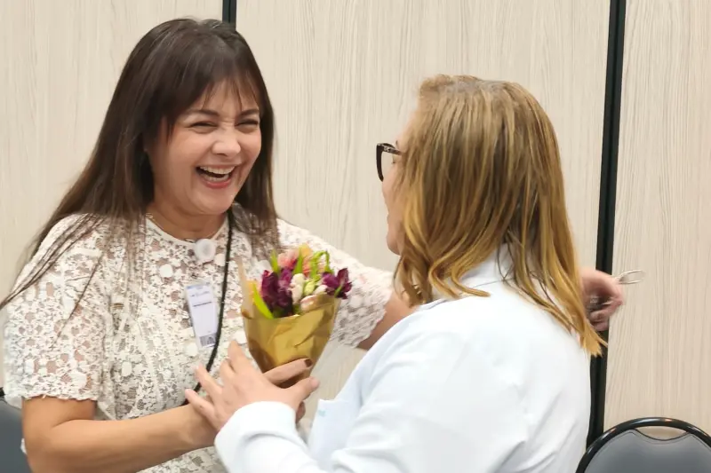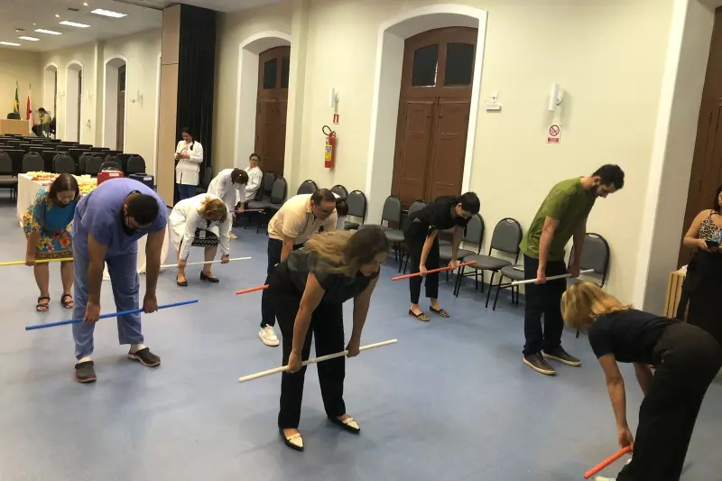 Junto com outras colegas de residência, Rebeca participou, na manhã desta segunda-feira (20), de uma atividade voltada a promover a interação e a confraternização entre antigos e novos médicos que atuam na instituição. Um momento de relaxamento para os profissionais, que puderam conhecer outros colegas de profissão, se reencontrar e trocar ideias em um ambiente descontraído, planejado como uma homenagem à categoria.